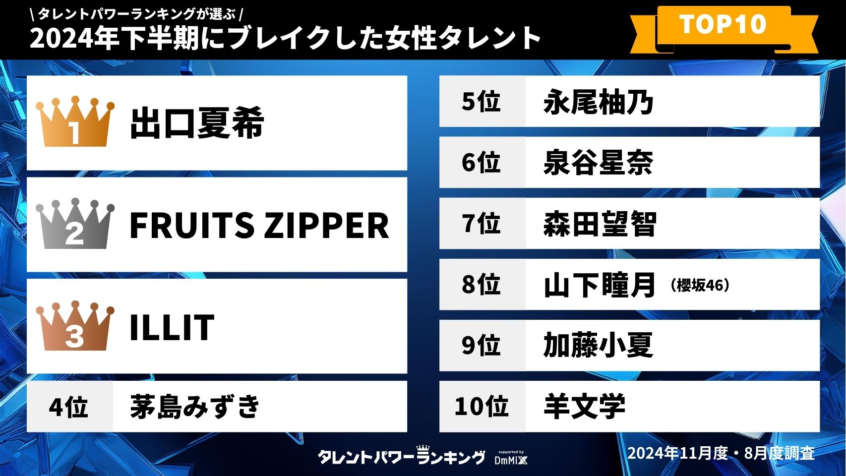 「タレントパワーランキング」2025年11月度調査(第4四半期)総合トップ10