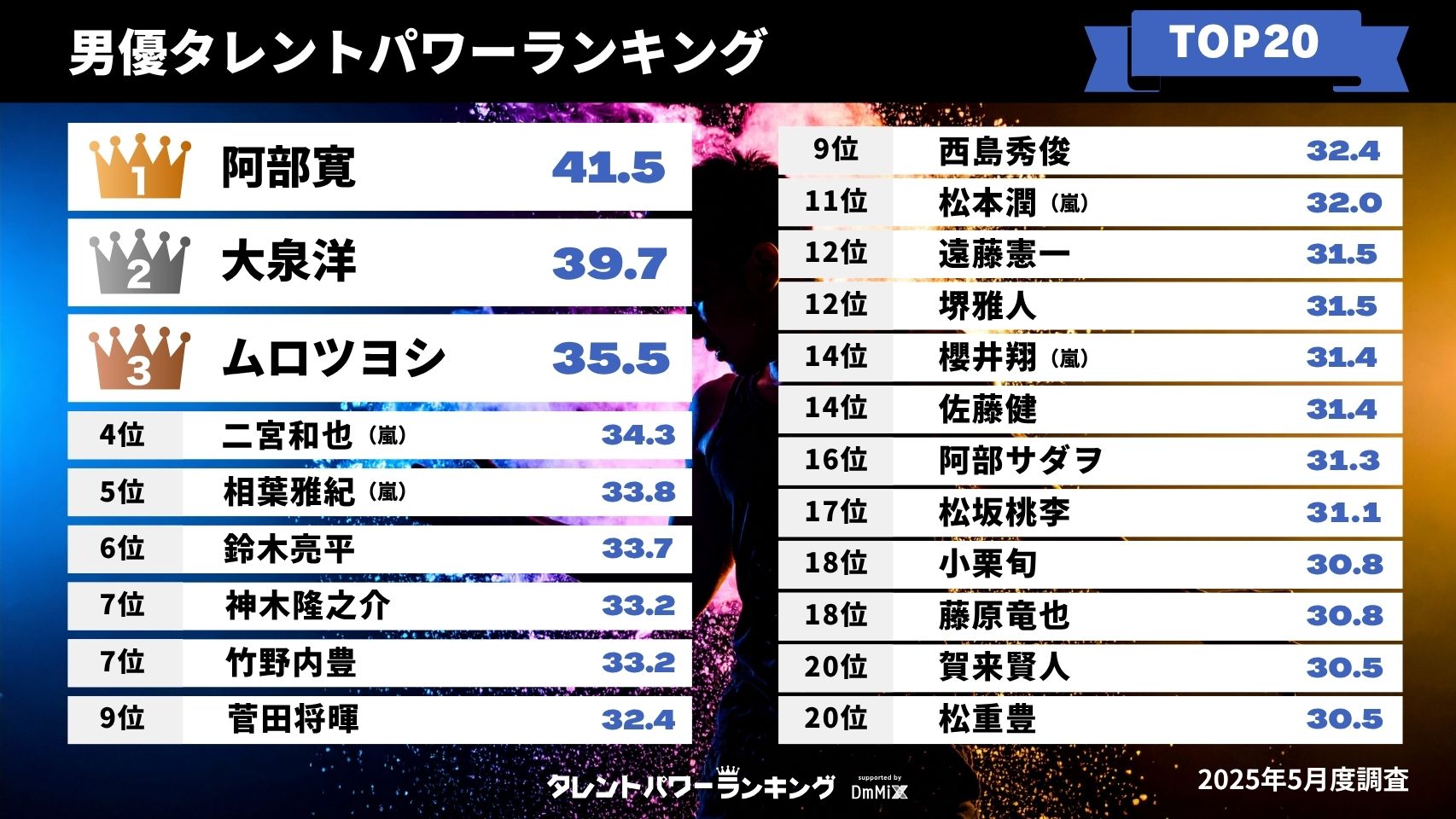 2025年5月度・最新男優タレントパワーランキングTOP20