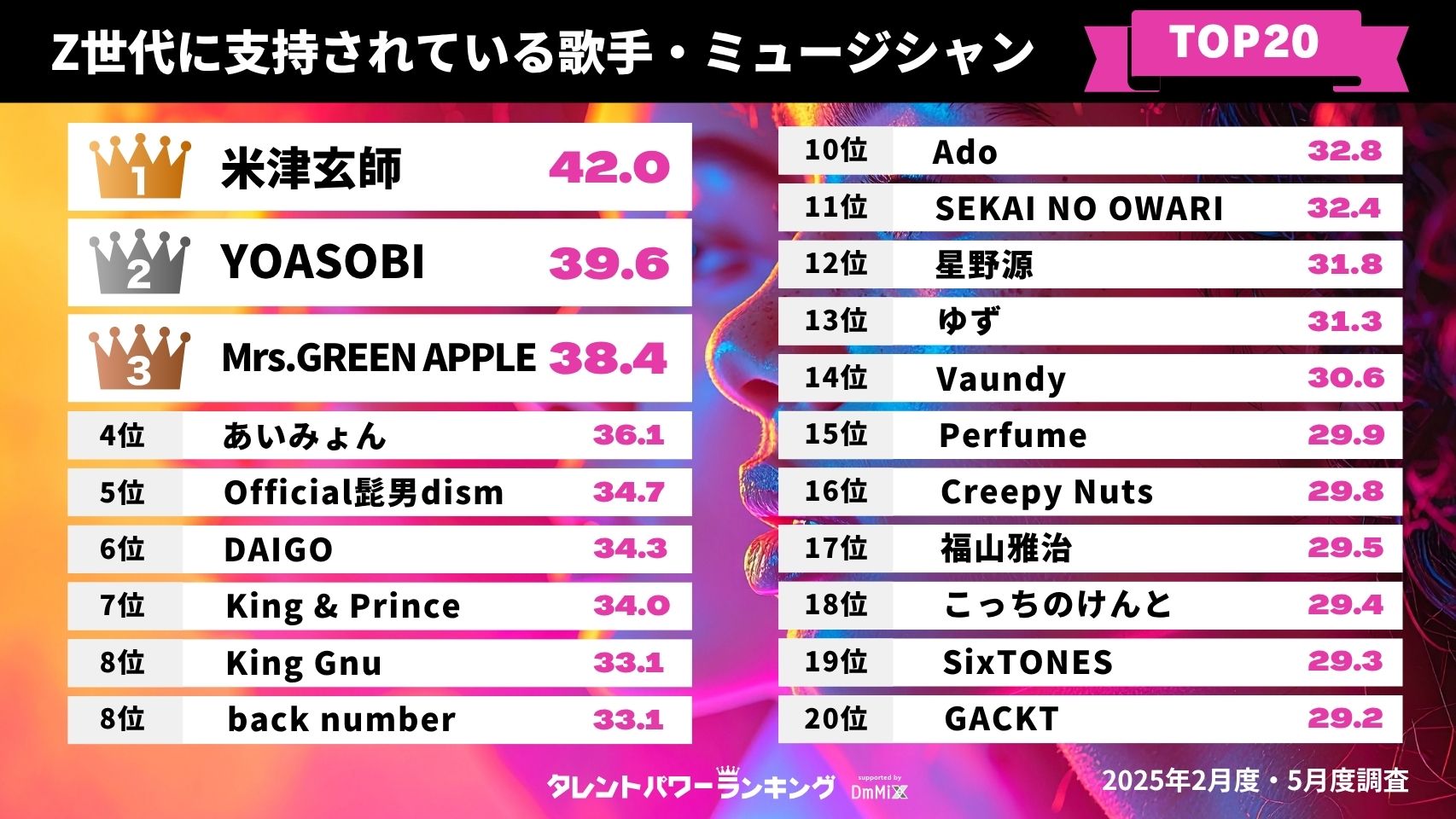 「YOASOBI」「Mrs.GREEN APPLE」を抑えて1位になったのは男性ソロ歌手