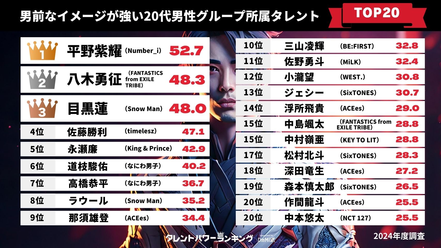 2025年5月度・最新男優タレントパワーランキングTOP20