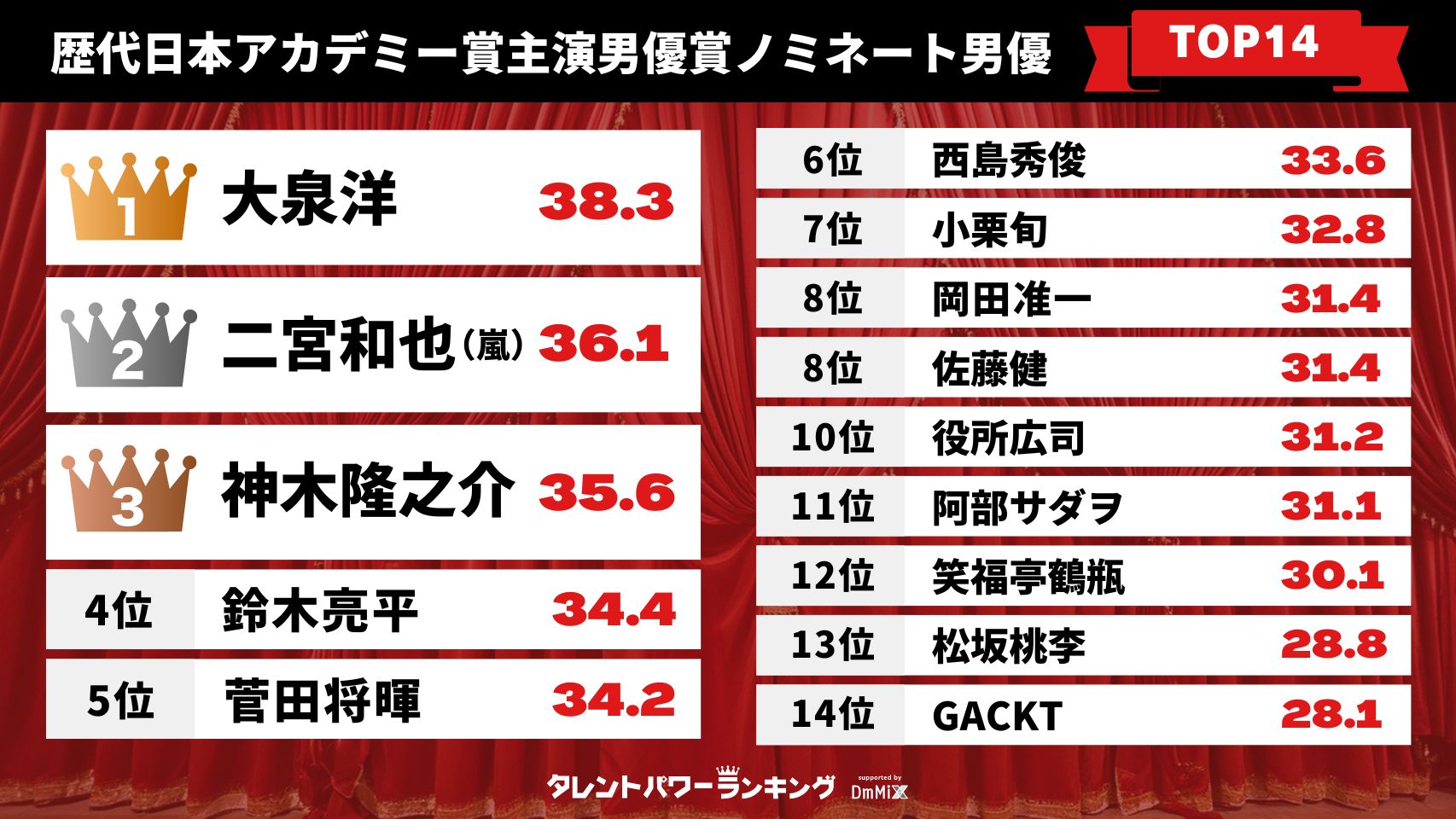 日本アカデミー賞男優ランキングデザイン画像