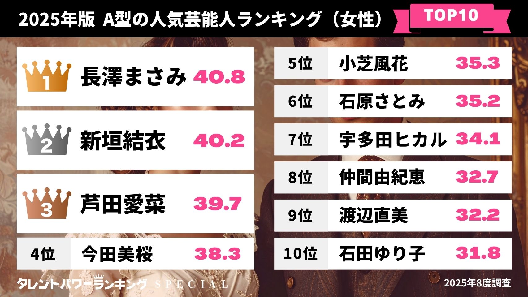 「タレントパワーランキング」2025年8月度調査(第3四半期)総合トップ10