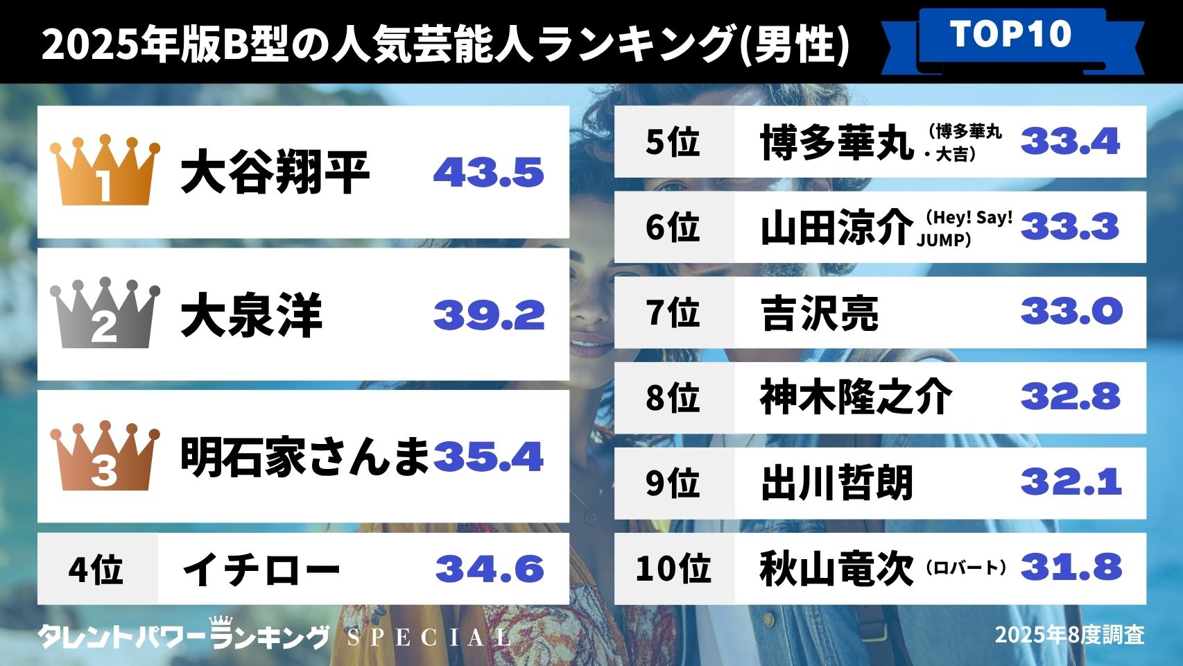「タレントパワーランキング」2025年8月度調査(第3四半期)総合トップ10