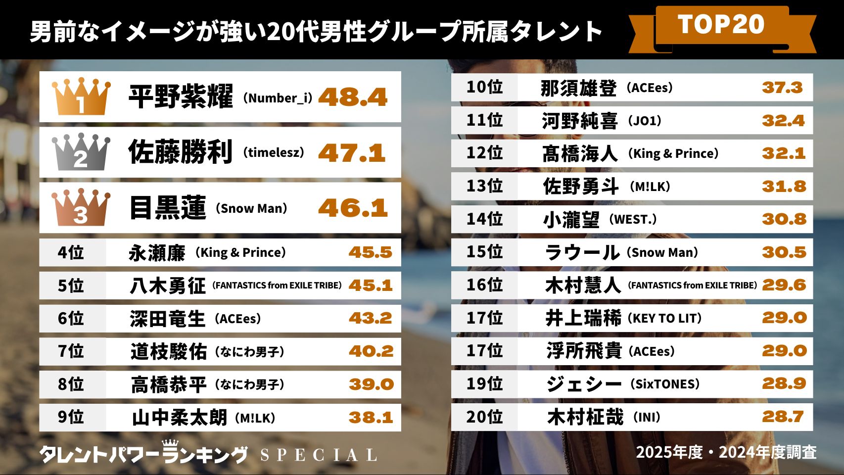 2025年5月度・最新男優タレントパワーランキングTOP20