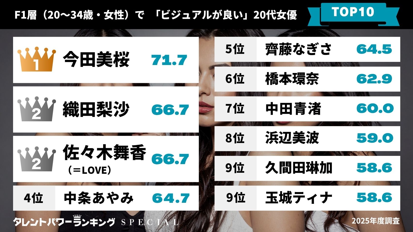 2025年5月度・最新女優タレントパワーランキングTOP20