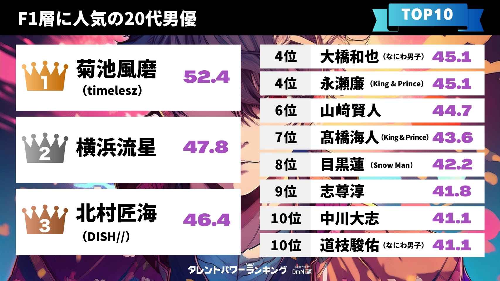 F1層20代男優TOP10