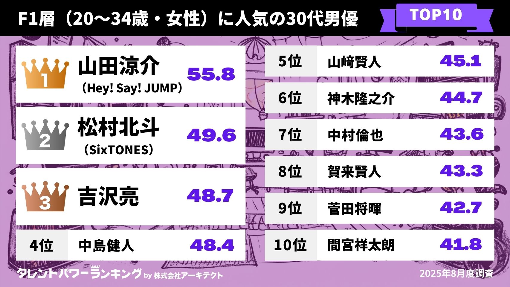 【2025年版】M1層とF1層における30代男優各TOP10比較
