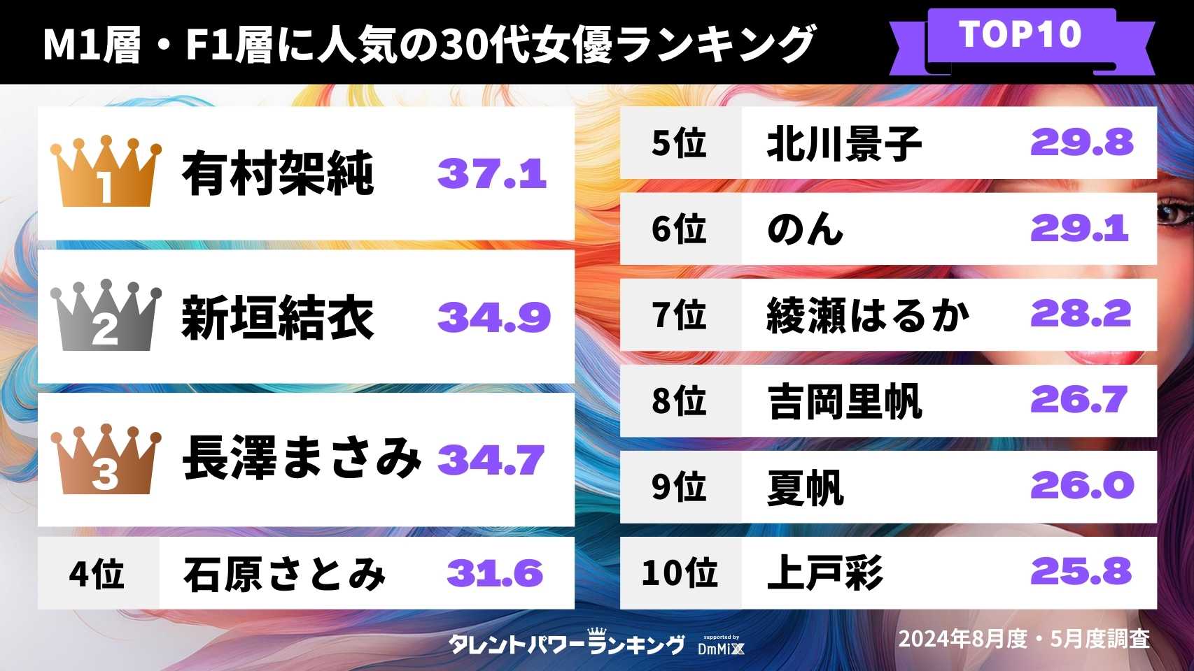【2025年版】M1層とF1層における30代女優各TOP10比較