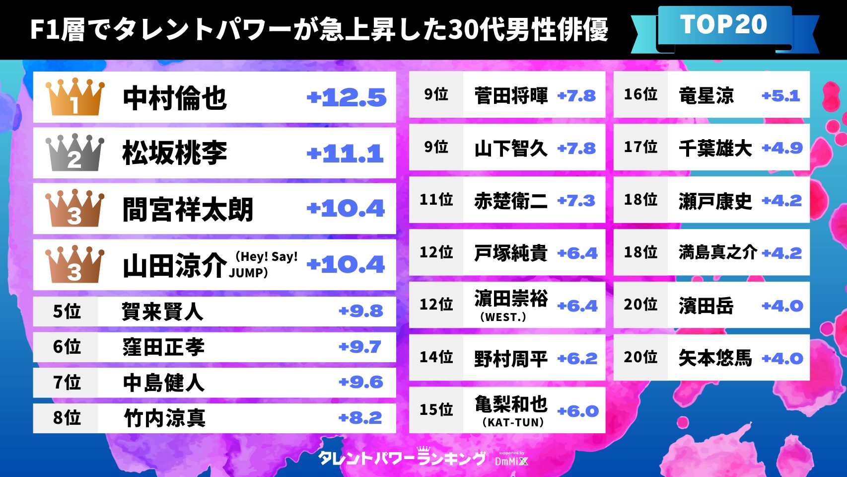 2025年5月度・最新男優タレントパワーランキングTOP20