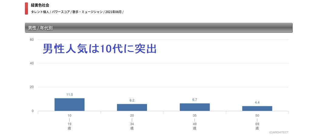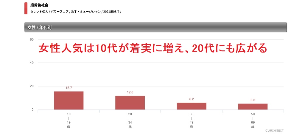 そんな彼らのタレントパワースコアを見ると、全体では8ポイントと、コアな人気のアイドルやアーティストが多い5ポイントを少し上回る程度となっている。