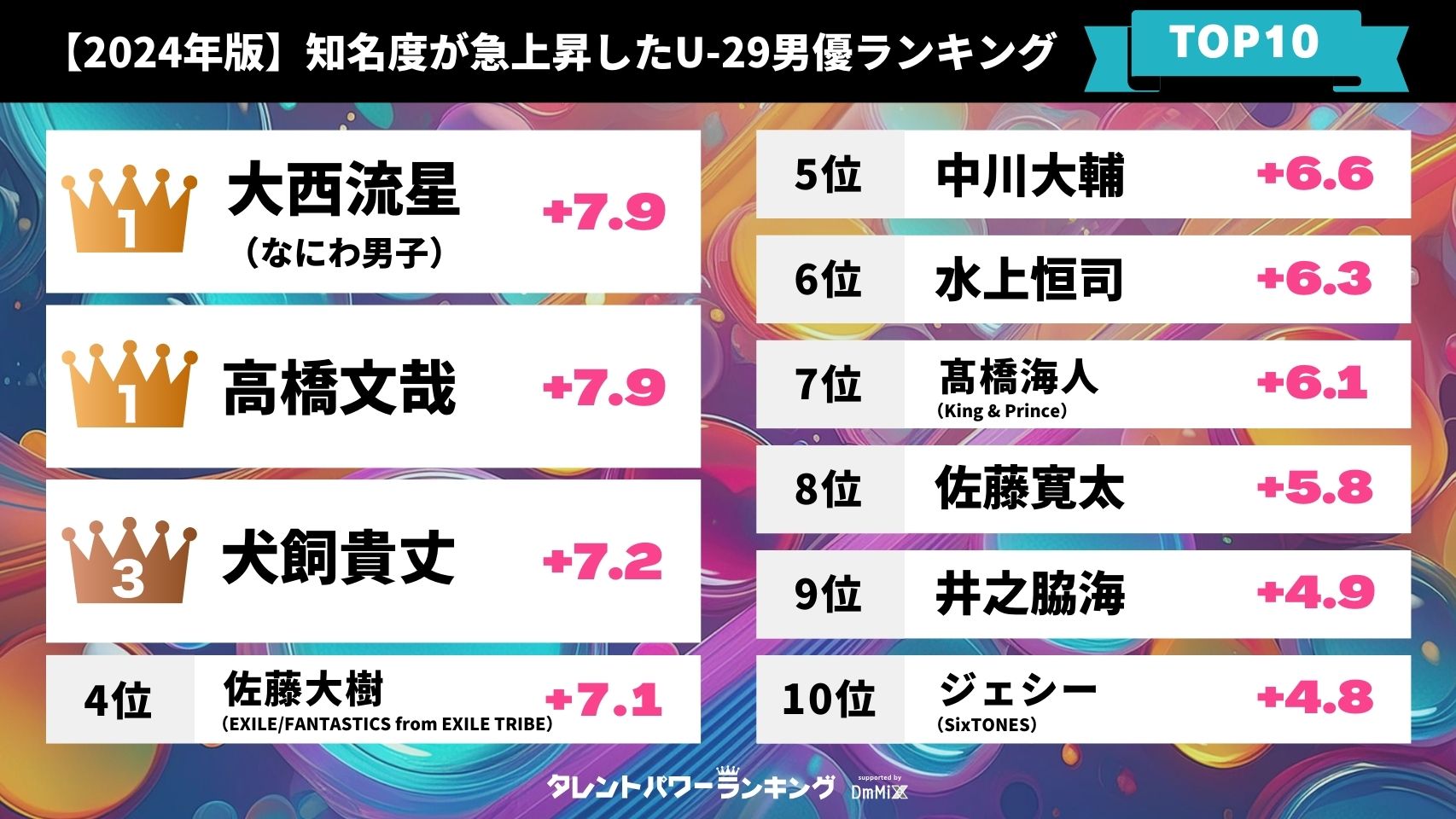 Z世代で急上昇した俳優TOP20(男女混合)