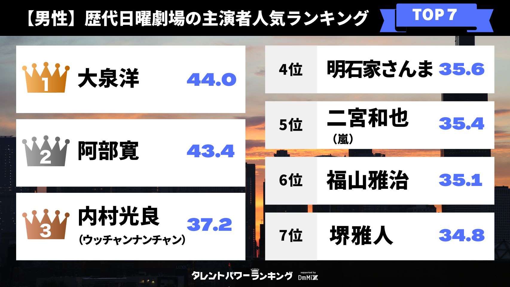 「タレントパワーランキング」2022年11月度調査(第4四半期)の総合トップ10を発表!