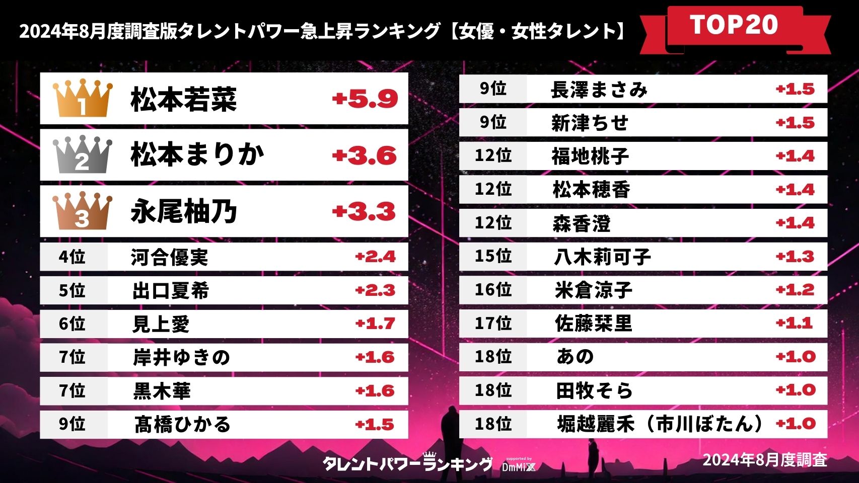 2025年5月度・最新女優タレントパワーランキングTOP20