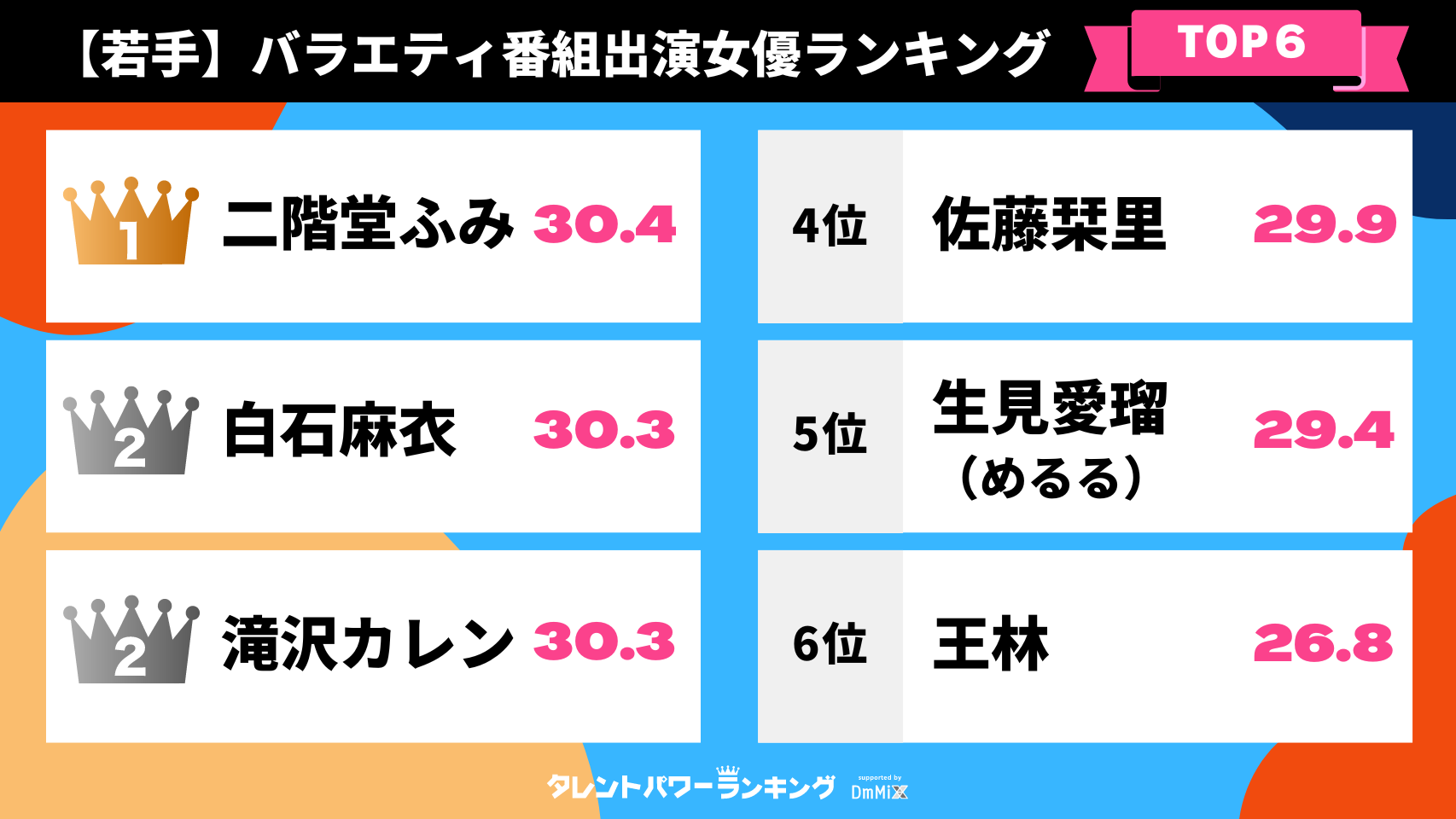 タレントパワーランキングが選ぶ「2022年下半期にブレイクした男性タレント・女性タレントTOP10」